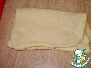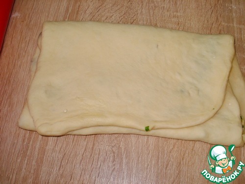 Потом раскатать в прямоугольник. И начинаем складывать.