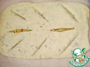 Защипать края и раскатать в прямоугольник 30х15. Сделать разрезы.