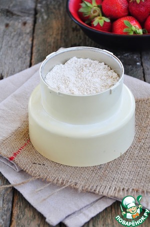 Клубнику помыть, почистить, хлопья смолоть в кофемолке в пудру.