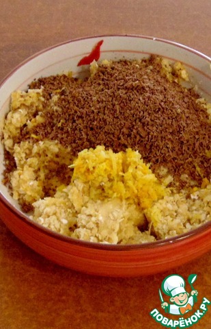 Хорошо перемешать, добавить тертый на мелкой терке шоколад и цедру апельсина.