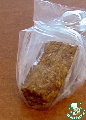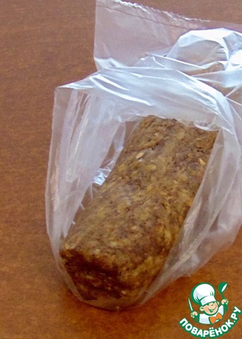 Полученное тесто завернуть в пищевую пленку. Сформировать колбаску диаметром 5-7 см. Заморозить 30-60 минут в морозилке. -