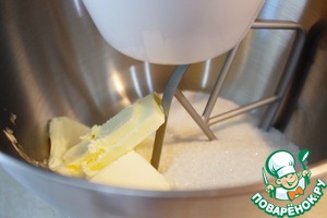 При помощи миксера на средней скорости перемешайте размягченное сливочное масло и сахар до получения однородной массы.