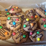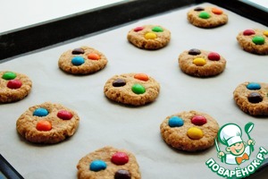 Выложите с большим расстоянием на противень и сверху добавьте драже М & Ms дополнительно