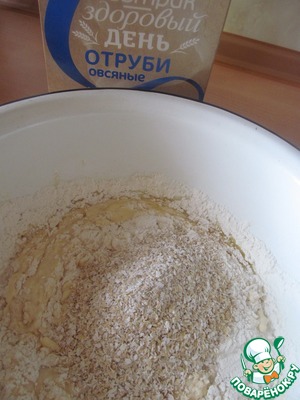 3. В яичную смесь добавить йогурт, муку с отрубями.
