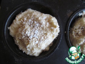 4. В форму выкладываем 1 ложку теста, сверху клубнику и еще одну ложку теста. Сверху посыпаем отрубями