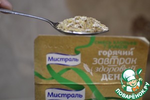 Отмеряем хлопья, можно заранее смешать их с молоком, но мне нравится, когда они сухие.