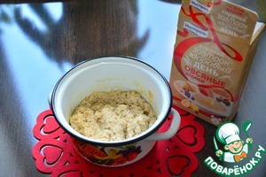 Сварить кашу из молока, воды, сахара и овсяных хлопьев. Добавить масло и дать остыть