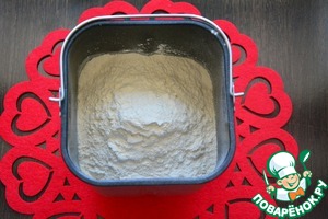 Замесить тесто. Я тесто замешивала в хлебопечке. Кашу смешать с опарой, добавить соль и муку