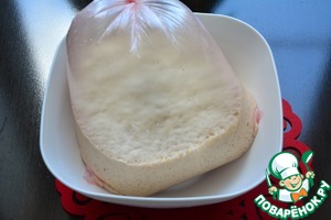 Тесто завернуть в пакет и убрать в теплое место для подъема. Затем обмять и разделить на 24 колобка