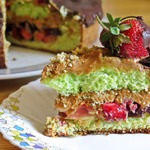 Дашуля! Ну как тебе мои краски лета? Обалденный тортик! Он нас порадовал сегодня, в День Рождения мужа! Шпината брала больше, как видишь! Крем делала с маслом и вареной сгущенкой, покрывала им коржи полностью. Когда "чашу" наполнила фруктами и желе, присыпала её крошками бисквита и сверху покрыла кремом, ну и "второй этаж"! По верху второго этажа присыпала крошкой, выложила клубничку и покрыла глазурью!)))) В общем, увлеклась!))) Зато вкуснятинаааааа... Спасибо, дорогая! Теперь я попробовала "живой" кусочек твоего тортика! Фото целого торта покажу в отчете!