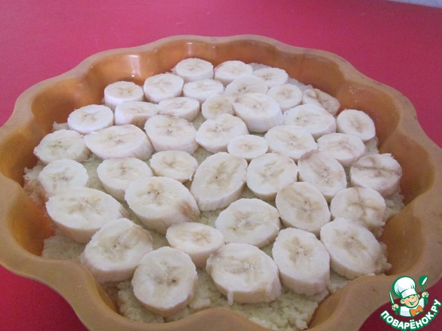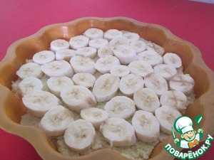 • Очищаем бананы и режем на кружочки. Выкладываем их на поверхности каши в один ряд, но плотненько.