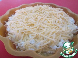 Посыпаем сверху натертым сыром. И, ничем не накрывая, ставим в духовку на 15 минут (предварительно разогретую до 180°С).