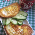 Выкладываем на яйцо серединку батона. Немного прижать лопаточкой. И ждем, пока поджарится та сторона.