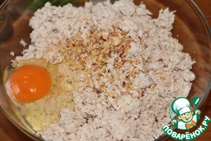 Отварить курицу, или грудки. Если уже отварены заранее, то провернуть через мясорубку.