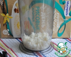 Рисовые хлопья отправьте в блендер. Тщательно взбейте.