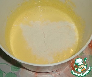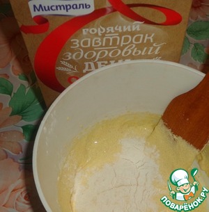 Добавляем муку и перемешиваем.