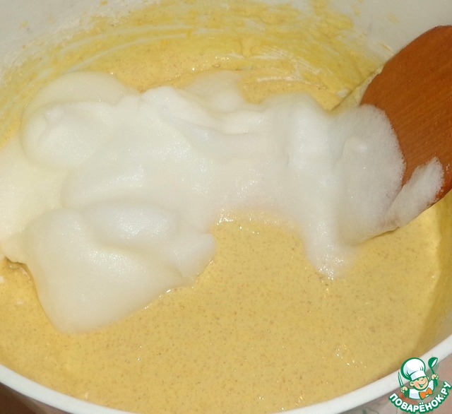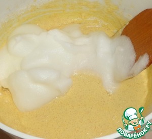 Взбиваем белки в густую пену и добавляем в тесто.