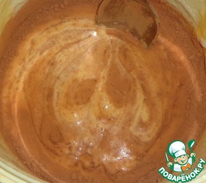 Тест разделить на две части. В одну часть добавляем какао-порошок и перемешиваем.