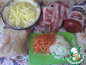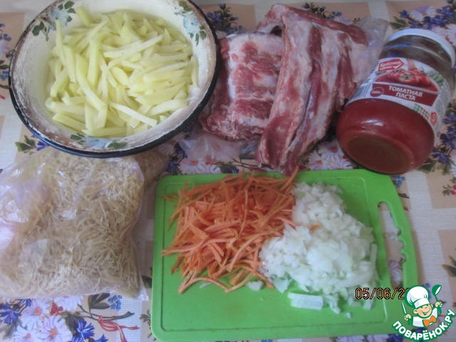 - Ребра говяжьи (можно использовать другое мясо на ваш вкус) — 800 г