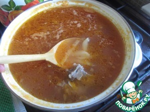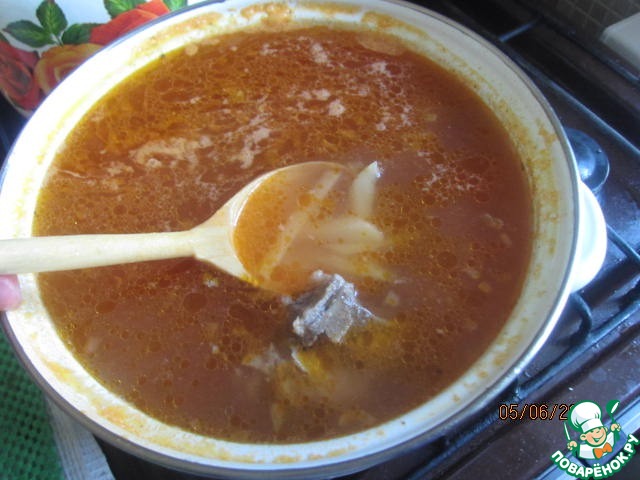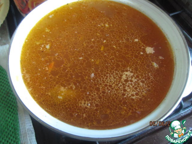 В самом конце добавляем 2 горсти лапши ( по желанию добавить зелень). варим ещё 5 минут и "Красный " суп готов