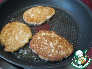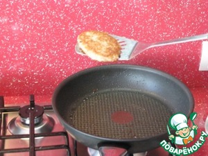 Приступаем непосредственно к жарке. Разогреваем хорошо сковороду (у меня с толстым дном) наливаем немного масла и ложкой выкладываем оладьи.