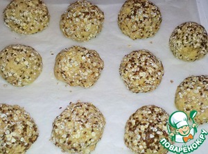 Поднявшееся тесто не вымешивала, а аккуратно отщипывала, обваливала в хлопьях и семенах льна без нажима придавая круглую форму. -