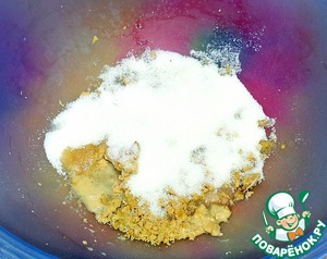 В глубокую миску раскрошила дрожжи. Насыпала сахар.
