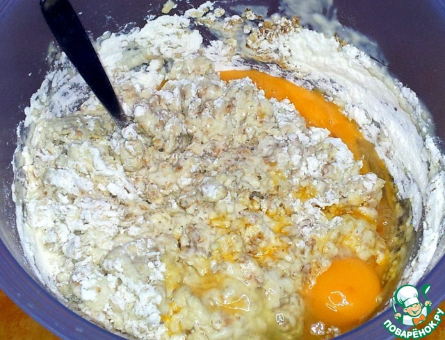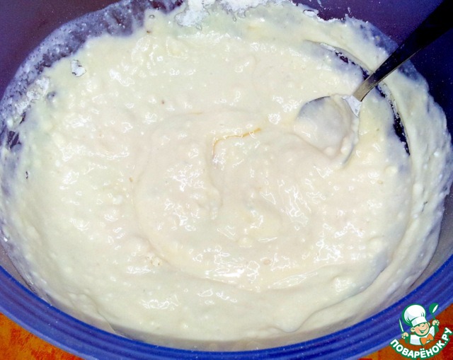 Налила простоквашу, добавила муку.