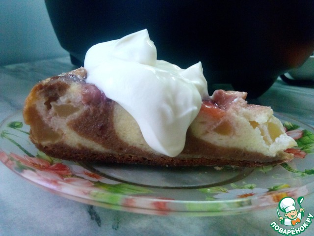 Творожная запеканка "Зебра" с яблоком и клубникой