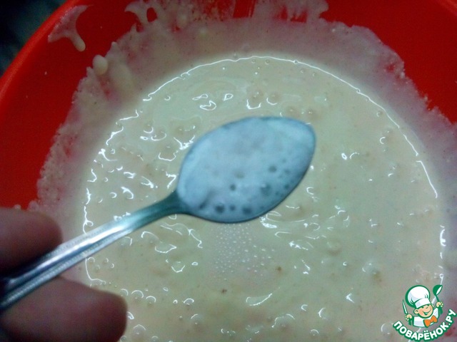 Добавляем соду гашеную уксусом, перемешиваем хорошо
