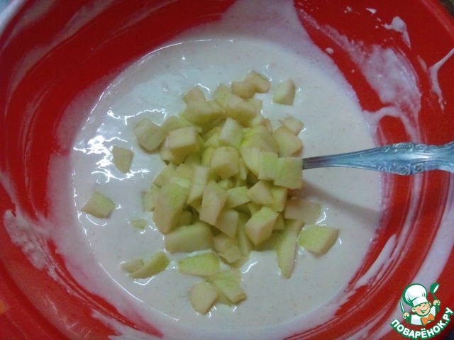 Добавляем яблоко в ту часть, которая без какао, перемешиваем.