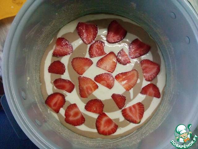 Рецепт «Творожная запеканка "Зебра" с яблоком и клубникой»: