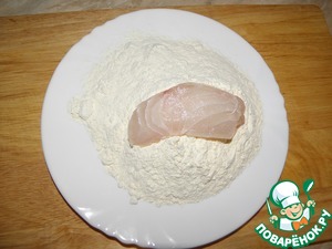 Рыбу нарезать удобными для вас кусочками, посолить, обвалять в муке