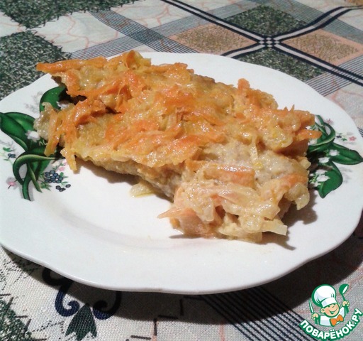 Рыбку мы конечно любим! Уж рецептов много знаем! И всегда готовить будем! Варим, жарим, запекаем! С ней салаты, с ней котлеты, очень много разных блюд! И сомнений даже нету, все с тарелочек уйдут! А сегодня очень кстати, вам друзья я предложу, рыбку в нежном маринаде, вдруг понравится кому! Все наверное привыкли делать маринад с томатом, отойдем от этой мысли, убедим себя в обратном! Есть другие маринады, очень даже хороши! Лишь попробовать их надо, приготовим от души! Вкусная рыбка у нас получается, лук и морковка всегда сочетаются! В них не жалея сметаны добавим, рыбку до золота нашу обжарим! И укроем шубкой этой, постоит она немного.. Ничего прекрасней нету, ароматного сугроба! Вот такой простой рецепт, может вам понравится! Рыбка шлет большой привет! Всем нам улыбается!