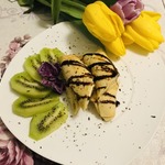 На разогретую сковороду кладем сливочное масло и растапливаем его. В блинчик заворачиваем целый банан и обжариваем его в сливочном масле примерно по 1 минуте с каждой стороны. Выкладываем на тарелку и поливаем шоколадным соусом. Можно подать этот десерт со свежим киви или другими фруктами с кислинкой. Очень хорошее сочетание получается.
