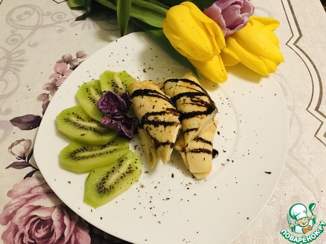 Рецепт «Блинчики с бананом и шоколадным соусом»: