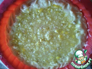 Добавить муку, обязательно просеянную. Тщательно перемешать. Тесто должно быть по консистенции как густая сметана. Выложить в форму. Я делаю в силиконовой- поэтому ничем ее не смазываю. Включаем духовку разогреваться до 180-190 градусов