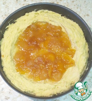 Выкладываем варенье. У меня - абрикосовое. Мама всегда делала со смородиновым, было очень вкусно с кисленьким!