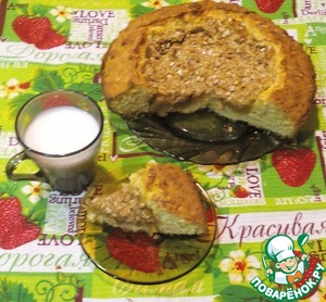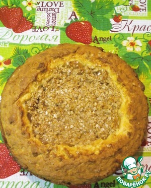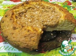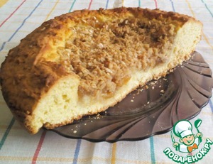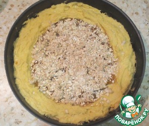 У меня тесто более хлопотное: жидковатое и липкое для замеса вручную, я выливала его в форму и распределяла ложкой от центра к краям, делая бортики. Но стоило повозиться, пирог получается внутри очень нежный.