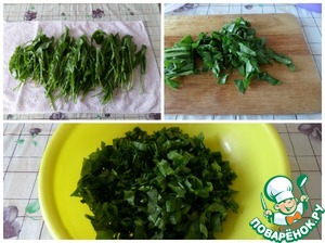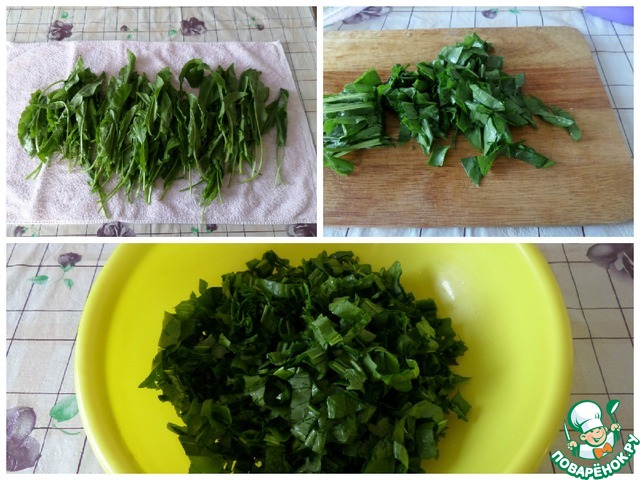 • Моем щавель и раскладываем на полотенце, чтобы обсох. Нарезаем.