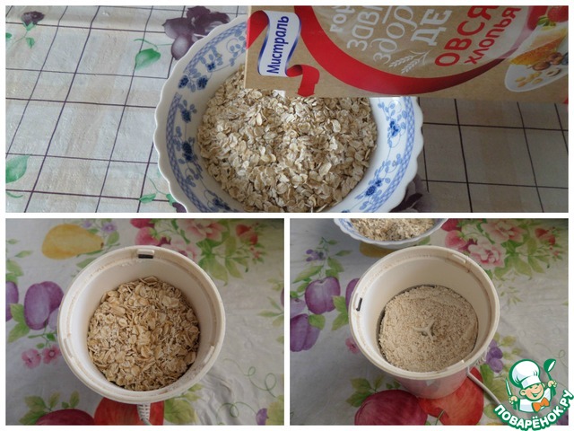 • Отмеряем нужное количество хлопьев. Измельчаем их в муку (я использовала кофемолку).