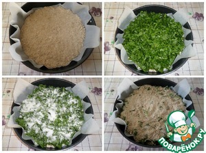 • На противень, застеленный пергаментом, выкладываем половину теста-крошки, немного придавливаем ладонью. Поверх него выкладываем нарезанный щавель. Присыпаем оставшимся сахаром. Сверху выкладываем тесто-крошку.