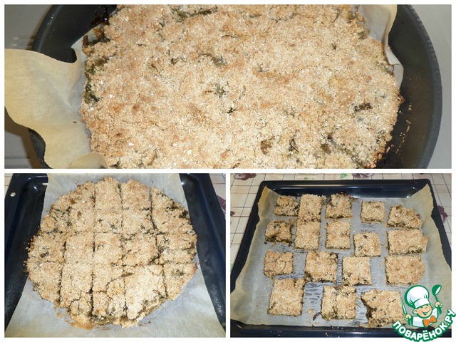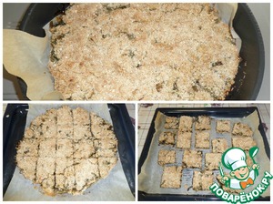 • Выпекаем 30-35 минут при 150-170 градусах. Нарезаем на куски, перекладываем на другой противень и возвращаем в духовку на 5-10 минут.