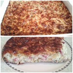 Шикарный пирог! Легкий, воздушный и сыыырный! Я добавила ещё нарезанные две сосиски (завалялись в холодильнике). Получилось и сытно и вкусно! На фото горячий кусочек, поэтому видно, сыр расплавленный. Спасибо большое за рецепт.