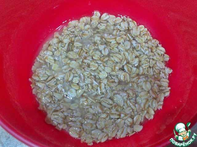• Овсянку залить кипяченной охлажденной водичкой и дать постоять 15-20 минут. Можно конечно овсяные хлопья запарить кипятком, но помните, чем меньше хлопья подвергаются тепловой обработке, тем больше в них сохраняется элементов. А у нас с Вами задача "Очищение кишечника", поэтому рекомендую делать именно кипяченой охлажденной водой.