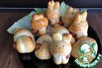 Выложить наши булочки на противень, застеленный пергаментной бумагой и поставить в тепло на 20 минут. Затем обмазываем булочки яйцом (или желтком, разбавленным молочком) и выпекаем в заранее разогретой духовке 25 минут при температуре 180 градусов.