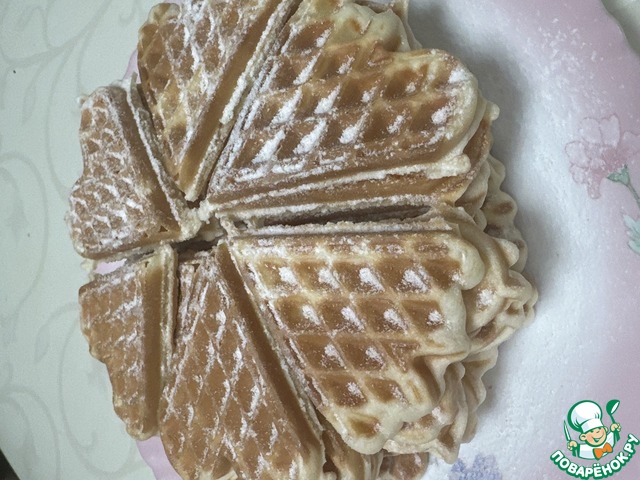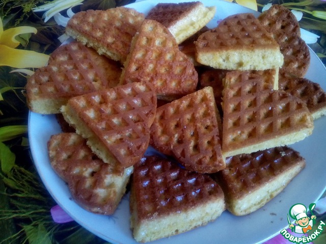 Делала сразу двойную норму, в моей вафельнице вышло ровно на 2 пропека по 4 штуки. Съели моментом!