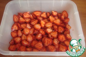 Нарезаем клубнику как нравится - мне нравится половинками, но можно и мельче, а можно и целой оставить)