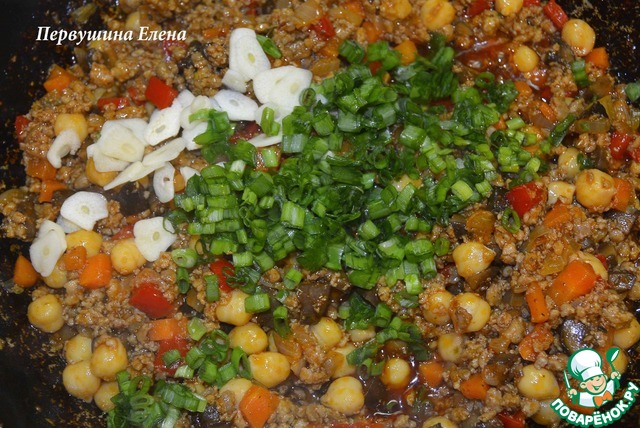 Добавить фарш и тушить, иногда помешивая, 10 минут.