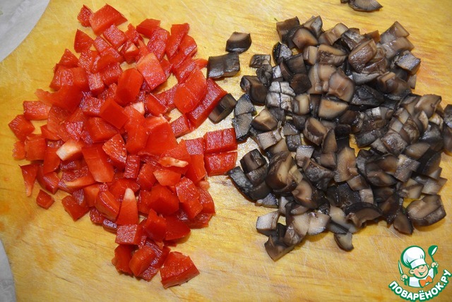 Сыр натереть на мелкой терке и добавить в массу. Хорошенько размешать, чтобы сырок связал все ингредиенты. Дать массе остыть. Горячую класть нельзя, иначе начинка расплывется.